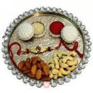 Adore your brothers wrist with this stylish rakhi thali contains; Roli, Tilak, Chawal along with 1/2 kg Dry fruits (cashew, almond, raisins and pista). Tie this graceful thread on your brothers wrist and make him feel special.