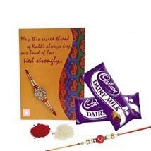 Celebrate the rakhi season a tasty treat to your loving brother by gifting this adorable hamper of chocolates and greeting card with roli chawal is also available to bless your loving brother. Your Gift Contains: