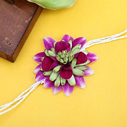 The different shades of pink in this exquisite rakhi is bound to add a lot of sparks to your festivities. Send this fresh flower rakhi to your brother on Rakshabandhan and make a difference this year. Your gift contains: Tube roses and purple orchids Rakhi with complimentary Roli Chawal (Rakhi design may vary as per availability)