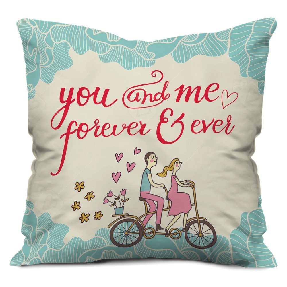 Valentine Gifts for Boyfriend Girlfriend Love Printed Cushion 11X11 Filled Pillow White You & Me Forever Cycling Couple Gift for Him Her Fiance Spouse