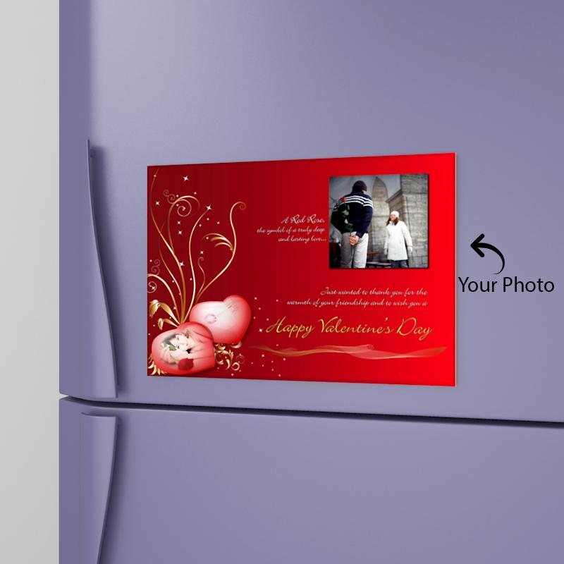 There are thousands of innovative ways to express your love to your valentine. This product is one such innovative idea to convey the message of love to your darling. This personalized photo magnet has a lovely red romantic theme with a valentine message on it. The picture of your loved one goes on the top right slot of the magnet. The magnet is an A4 size matte finish sheet and can be mounted on steel almiras and refrigerators. This product is an exclusive Valentine’s Day gift. So, express your love in a unique way with this personalized photo magnet this valentine’s day.