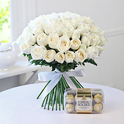 White Roses With Ferrero Rocher