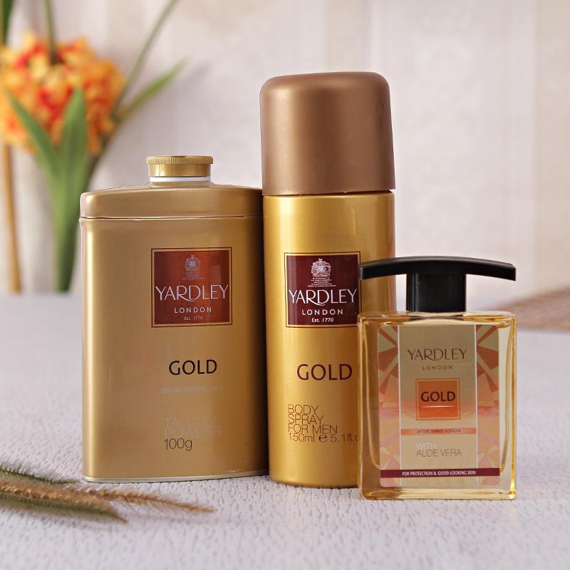 Give your man a reason to flaunt himself by pampering him with stylish grooming gifts from OnlineDelivery.in. This is a mind blowing gift hamper that comprises of a Yardley Gold Talcum powder, one Yardley Gold deodorant and one Yardley Gold Aftershave. This refreshing and skin nourishing gift hamper is bound to make him feel special and handsome. So go ahead and book your order for this hamper to make special occasions memorable for both of you. Let him hone his handsome looks with this awesome hamper.